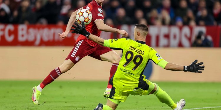 Lewandowski’s second involved a wonderful first touch and finish from Sane’s pass – and he then latched onto Manuel Neuer’s long ball and dinked the ball over Odysseas Vlachodimos from near the edge of the box.
