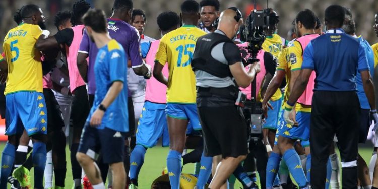 Tetteh knocked down Aaron Boupendza of Gabon as players and officials traded blows after the game in an unsavoury fracas.