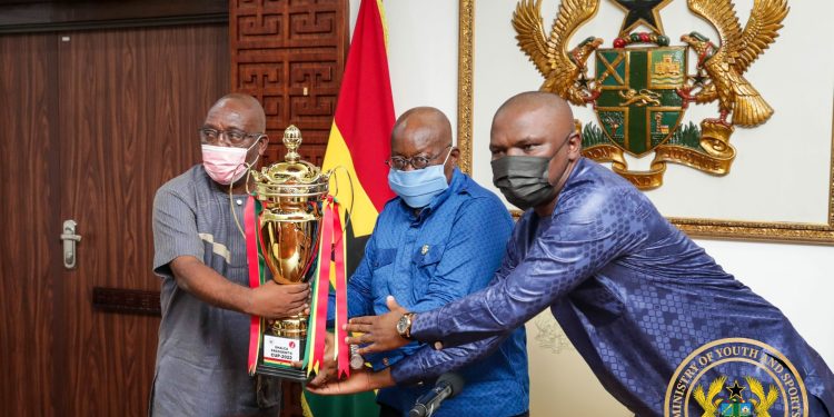 A delegation from the National Sports Authority (NSA) and the Ghana League Clubs Association (GHALCA) presented the President’s Cup to Nana Akufo-Addo at the Jubilee House.
