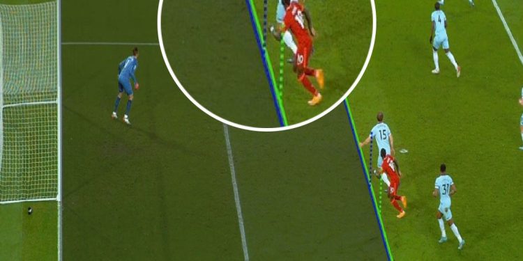 This incident was again another one where the arm was used to judge the attacking player. In this case, the lines drawn touched. This is very important because when the lines touch the attackers get the benefit of the doubt. In this situation the lines indicate that Mahrez’s arm was more or less level with Lindelof’s foot. These contentious decisions are very difficult for fans to stomach due to the similarity with other decisions that go their way but the truth is offsides are the most consistent part of the refereeing you will see in the Premier League. It is objective, the subjective part is determining if there is obstruction such as in the case of Virgil van Djik last week but determining if a player is in an offside position is non-negotiable.