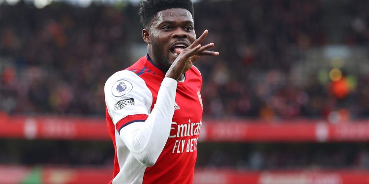 In the game against his countryman, Daniel Amartey, Arsenal’s Thomas Partey rose highest to give the Gunners a deserved lead over Leicester City.
