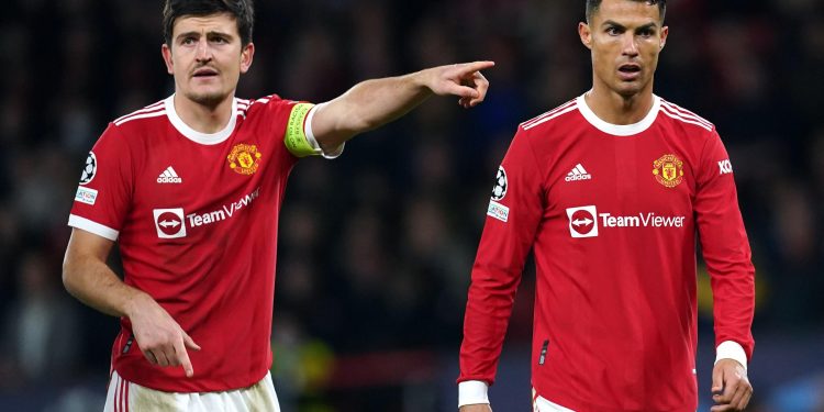 Harry Maguire accidentally clashed heads with Cristiano Ronaldo in Man United’s defeat.