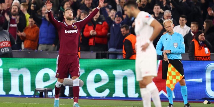 West Ham took the lead on the night, and levelled the tie at 1-1 when Tomas Soucek headed home a cross from Michail Antonio.