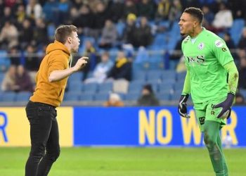 Nigerian goalie Maduka Okoye ‘chased’ a pitch invader before being hit by object in Rotterdam’s win over Vitesse